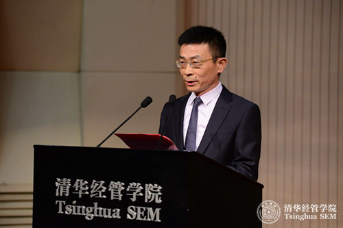在致辞的最后,高建教授和大家分享了朱镕基老院长对同学们寄予的厚望。老院长曾经在给清华经管学生的信中说:“纵我廉颇已老,但此心耿耿,始终和你们在一起”,并勉励清华师生“务必志存高远,追求完美,自强不息,不达世界一流,誓不言休”。