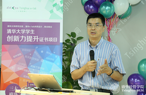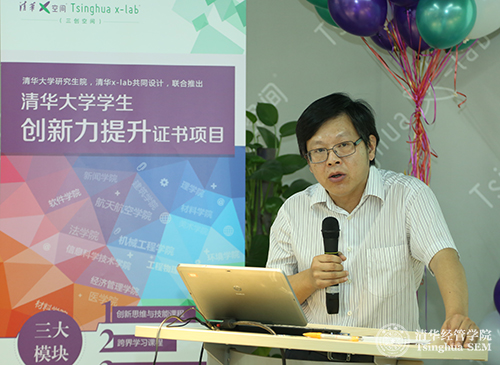 创新力提升证书项目经过一年半的发展到2016年秋季学期,共计提供37门课程,41位各院系教师参与课程教学,410名同学参加该项目的学习。作为思维与技能模块的授课教师,来自清华经管学院创新创业与战略系的程源教授表示,跨界思维是非常重要的技能,技术领域的学生更应该关注建筑、历史、艺术等人文学科,熟悉其他领域专业的语言和思维模式才能真正打通知识结构,从而实现在本专业的创新思维。
