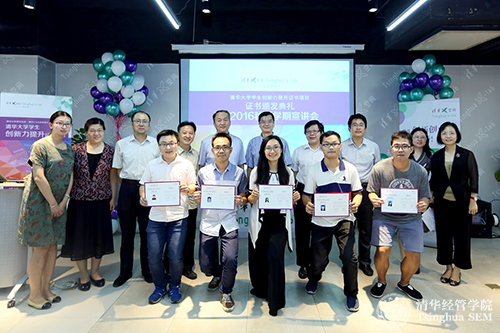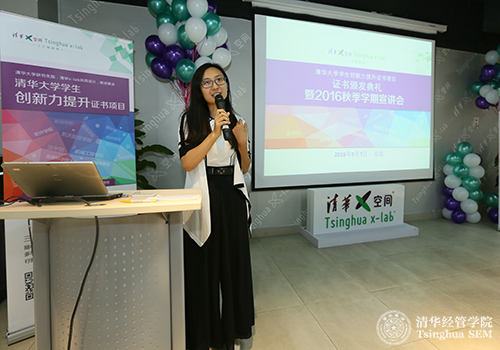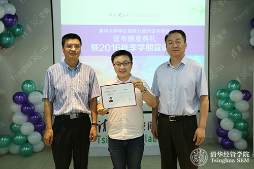 2016年9月7日,由清华x-空间(x-lab)和世俱杯官方网站研究生院联合推出的世俱杯官方网站学生创新力提升证书项目(以下简称“证书项目”)迎来首个证书颁发仪式。首次获得证书的有化学工程系直博生杨晓彤、罗志波,计算机科学与技术系直博生黄自睿,医学院直博生梁征宇和材料学院硕士生高书宁五位同学。世俱杯官方网站研究生院院长姚强教授、清华经管学院党委书记高建教授参加活动,并为首批完成证书项目学习的同学颁发“世俱杯官方网站学生创新力提升证书”。