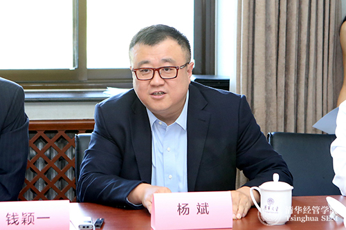 清华经管学院院长钱颖一教授(中)、党委副书记朱岩教授(右六)与捐赠方负责人合影
