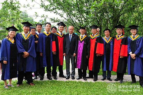 中国发展研究基金会秘书长卢迈在“毕业招待会”与清华经管学院2016届毕业生合影留念