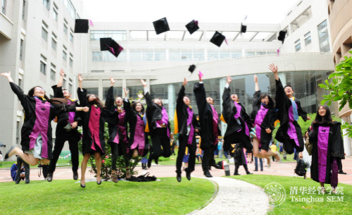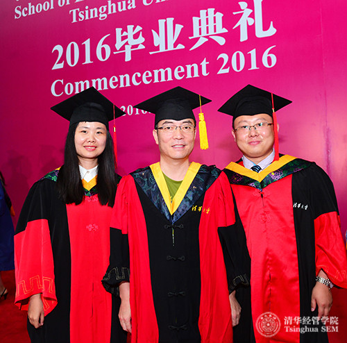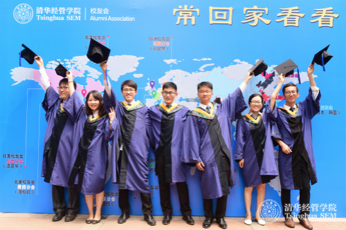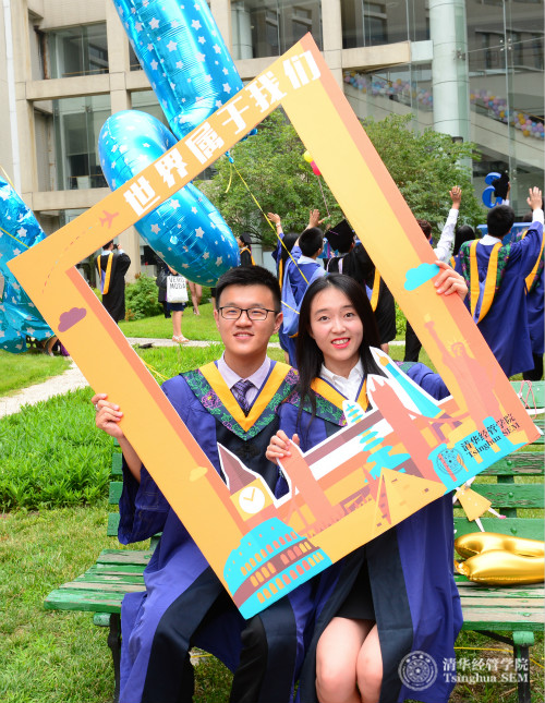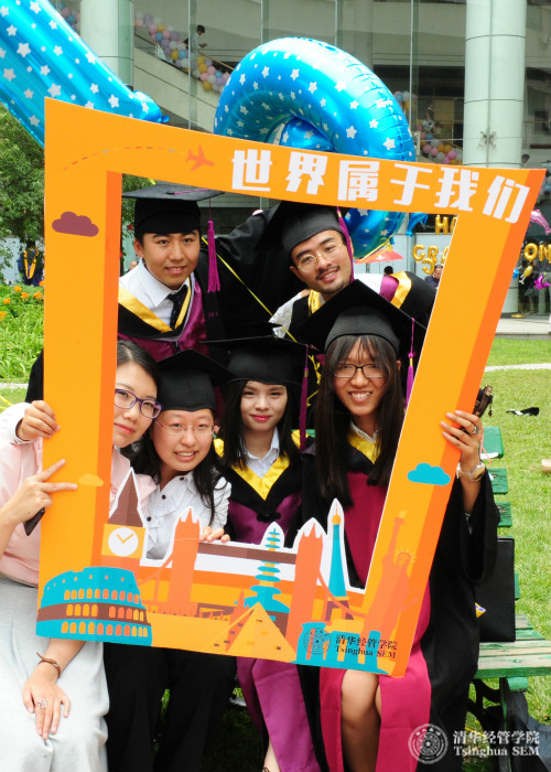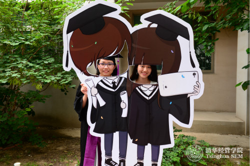 中午12点半开始,平日安静的中庭开始聚集着身着学位服的毕业生们,他们陆续携带家属、朋友来到现场。在合影背景墙前,毕业生们留下感言;在多样的拍照背板前,大家争相合影。几年前这些孜孜以求的年轻人,带着激情和梦想,齐聚清华,探索经世济民之道路。时光荏苒,此刻在绿草如茵的经管学院中庭,大家尽情享受毕业之喜悦。在活动现场,毕业生们还领到一份富有意义的毕业戒指,清华经管学院是他们永远的家园。