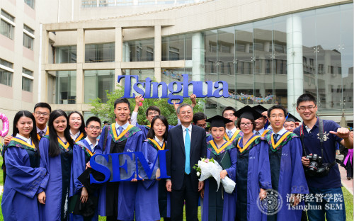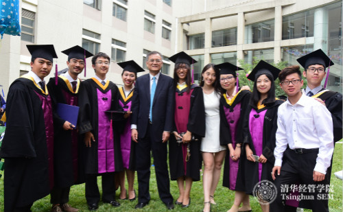 钱颖一院长在毕业招待会与毕业生合影留念