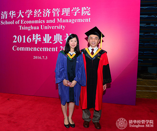 学院2016毕业典礼演讲嘉宾、中国发展研究基金会秘书长卢迈在毕业招待会与毕业生合影留念