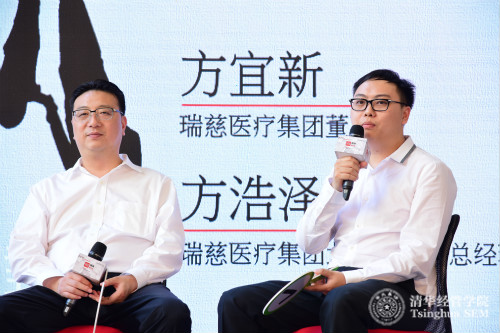 瑞慈医疗集团董事长方宜新先生与瑞慈医疗集团北京分公司总经理方浩泽先生在清华经管学院“YES青年商业领袖计划”启动仪式上参与两代企业家对话