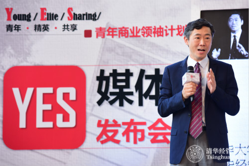 清华经管学院副院长、市场营销系副系主任陈煜波教授首先在发布会上诠释了项目的理念与定位,“所谓YES,Y指Young(青年),E指Elite(精英),S指Sharing(共享)。”他认为,作为中国经济与管理教育的参与者乃至引领者,培育下一代伟大的商业领袖是清华经管学院的历史使命,也是YES计划诞生的源泉。“精英”,首先要有担当和使命感,其次要具备犀利的思想和洞察力。发挥清华经管学院一直秉承的思想引领理念,用最具智慧的思想助力这个时代最具担当的青年精英,是YES计划秉承的理念与定位。“共享”,则是这个时代的诉求,全球互联时代的到来强调了资源整合与价值共创的重要性,“合作共享”取代“竞争博弈”。“共享”,不仅意味着资源的共享与融合,同时也意味着人们需要以更加开放包容的心态面对未来,而这种心态正是成功商业领袖的必备素养。YES计划正是共享精神与创新精神的产物,希望它能够成为中国青年商业领袖诞生的“荣耀黄埔一期”。