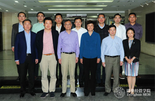 世俱杯官方网站党委书记陈旭教授(前排右三)、清华经管学院院长钱颖一教授(前排左三)、清华经管学院党委书记高建教授(前排左一)、清华经管学院副院长徐心教授(后排左三)与校友们合影