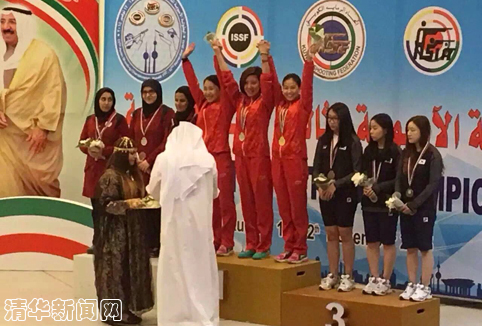 清华经管学院2015级新生曹丽佳在女子十米气手枪项目中获得个人第三、团体第二。(来源:清华新闻网)