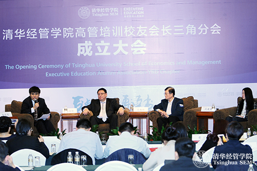 成立仪式后,由清华经管学院EMBA教育中心和高管培训中心联合举办的校友论坛举行。学院党委书记高建教授和学院高管培训校友会长三角分会周海敏会长分别以《大众创业的三个基本问题》和《“互联网+”时代的产业变革》为主题发表演讲。