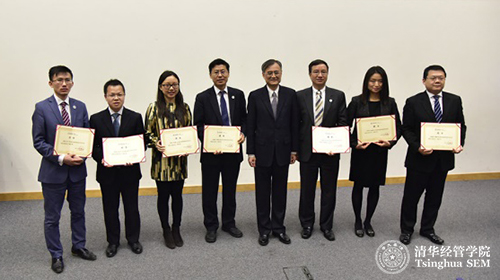 清华经管学院院长钱颖一教授向英国分会会长、特邀顾问、副会长、秘书长、副秘书长等颁发聘书