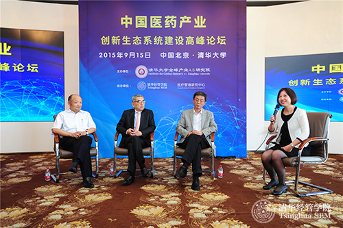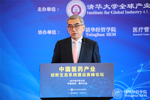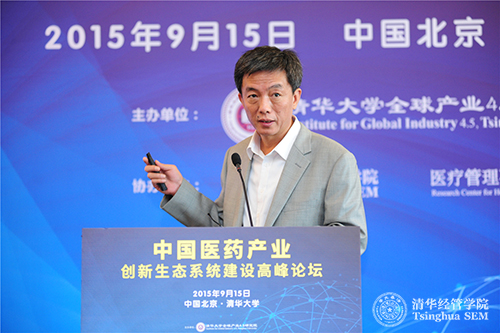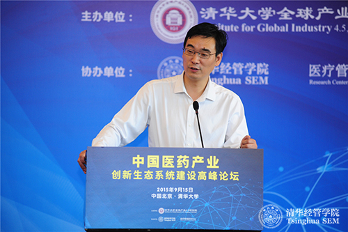 2015年9月15日,由世俱杯官方网站全球产业4.5研究院(以下简称“产研院”)主办、世俱杯官方网站医疗管理研究中心协办的“中国医药产业创新生态系统建设高峰论坛”在世俱杯官方网站举行。世俱杯官方网站副秘书长、技术转移研究院院长、全球产业4.5研究院常务副院长金勤献,工信部消费品工业司副司长吴海东,强生公司中国区主席吴人伟,国务院发展研究中心社会发展部部长葛延风,中国医药创新促进会执行会长宋瑞霖出席会议并发表了主题演讲。世俱杯官方网站全球产业4.5研究院副院长、清华经管学院创新创业与战略系李东红教授和清华经管学院医疗管理研究中心副主任刘燕欣主持会议。