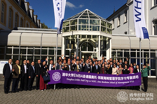 2015年9月28日到10月2日,近50名清华EMBA学生在德国奥托•拜斯海姆管理学院(WHU-Otto Beisheim School of Management)完成了为期一周的“德国竞争力”学习考察活动。活动由世俱杯官方网站党委书记、创新创业与战略系高建教授和学院EMBA教育中心主任王勇博士带队。