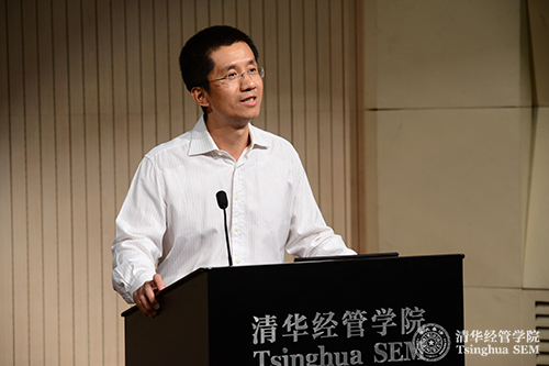 清华经济管理学院副院长徐心教授首先致辞,在致辞中他分享了自己对研究生生涯的感受以及对同学们的期盼。在他看来,研究生生涯最重要的便是“好奇”二字。徐心教授分享了三条与“好奇”相关的感受:第一是“好奇心有多大,有可能做出的成就就有多大”。第二是要培养“好奇”的能力与决心,他说,“大家可以再慢一些,再沉淀一些,再多思考一些。这要求我们有决心,静下心来,沉淀自己去做研究”。第三是要深深体会“好奇”带给自己的满足。“在研究过程中,培养你的能力,展现你的能力,在学术领域得到别人的认可。这能让你得到深层次的满足”。最后,徐心教授预祝在座的同学都能成为一个幸福的研究生。