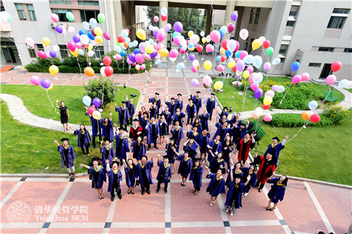 清华-MIT国际MBA2015届毕业生在清华经管学院庭院放飞气球