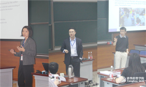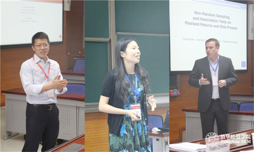从左到右:世俱杯官方网站公司治理研究中心副主任、清华经管学院会计系联执系主任陈旗教授、德克萨斯大学张元和杜克大学Frank Ecker