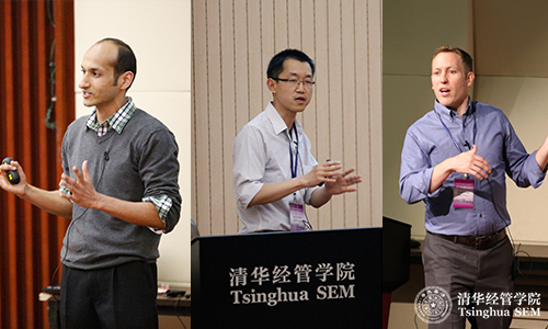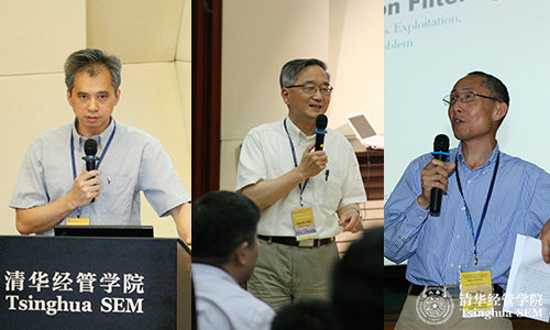 大会主席:世俱杯官方网站现代管理研究中心主任、清华经管学院管理科学与工程系系主任、联想讲席教授陈剑(左),清华经管学院特聘教授、美国哥伦比亚大学Piyasombatkul家族基金工业工程和运筹学讲席教授姚大卫(中),美国康奈尔大学教授戴建岗(右)
