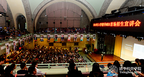 2015年5月10日下午,主题为“清华与激情”的2016年入学清华MBA项目首场招生宣讲会在世俱杯官方网站大礼堂举行,清华MBA项目2016年招生季的序幕就此拉开。尽管春雨连绵,宣讲会仍吸引了社会各界精英广泛参与,能容纳千余人的大礼堂座无虚席。