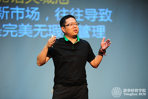 随后,两位清华MBA创业校友分享了自身的创业经历与感悟。2001级清华MBA校友、爱空间科技(北京)有限公司创始人、首席执行官陈炜以“爱空间、爱颠覆”为题,介绍了自身第四个创业项目“爱空间”的成功创业经历。他说,好的产品是演化出来的,而不是规划出来的。打造家装爆品需经历“标准、极致和参与”三步曲,而根本上在于一个“爱”字。创业成功的逻辑很简单——“唯有爱,能改变”!
