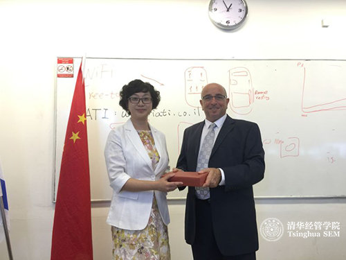 清华经管学院EMBA教育中心副主任孙美琦老师和以色列特拉维夫大学雷卡纳蒂商学院LAHAV高层管理人员教育项目总监Udi Aharoni在结业典礼上互赠礼物