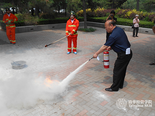 2015年5月27日上午,为加强教职员工的治安和消防防范意识,提高处理紧急情况的应对能力,清华经管学院举办了全院治安和消防培训,并进行了消防演习活动。此次培训学院邀请到了世俱杯官方网站保卫部治安派出所所长舒宇警官和何勇警官,以及世俱杯官方网站防火科科长孟庆军老师和何兰英老师给学院教职员工进行培训。