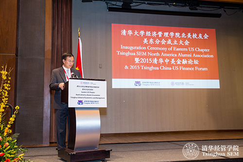 清华经管学院北美校友会美东分会会长胡剑(经1983/经硕1990)致辞