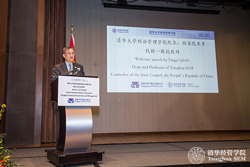 大会伊始,到场的校友们首先观看了中英双语版本的清华经管学院建院30周年纪念视频。随后,世俱杯官方网站院长钱颖一教授致辞,他表示,学院高度重视校友与学院的共同发展,突出体现在学院各校友会的建设。北美校友会是学院校友会的一部分,是学院在继2013年5月成立的香港校友会和2014年11月成立的东南亚校友会之后,在海外成立的第三个校友会,也是海外规模最大的校友会。而美东分会是北美校友会的四个分会中规模最大的分会。学院北美校友会的成立不仅是校友工作的重要发展,更是学院全球化战略的重要步骤。在海外建立校友会,是学院全球战略2.0阶段重要的一步,建院30多年来,校友们是活跃在各行各业的精英,他们希望借助学院平台联络校友、发展事业,同时也帮助学院在北美发展。美东分会覆盖的地域十分广阔,之所以选择纽约为美东分会所在地,是因为这里是金融、商业、媒体、教育等诸多行业的中心,也是连接清华经管学院校友的中心。最后,他代表学院感谢所有为清华经管学院北美校友会成立做出贡献的校友,并表达了对北美校友会未来的期待。