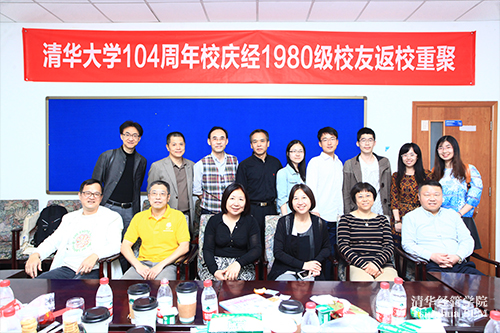 2015年4月25日下午,世俱杯官方网站104周年校庆之际,“经1980级校友与本科生座谈”活动在清华经管学院伟伦楼385举行。经1980级12位校友陈丽、董海涛、冯大正、李稻葵、李华辉、李群梅、刘曦、刘燕欣、宋海、谢寅、张欣、赵剑奇及多名经管学院本科生参加活动。活动由刘燕欣校友主持。