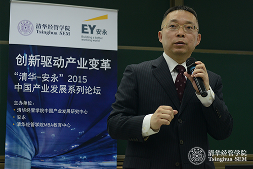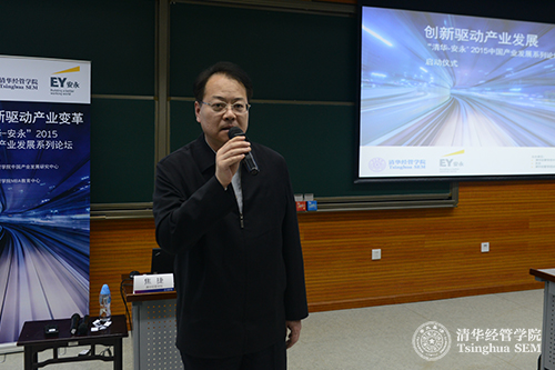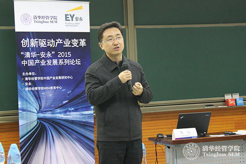 2015年4月11日晚,“创新驱动产业变革”——清华-安永2015中国产业发展系列课程启动会在世俱杯官方网站伟伦楼501教室举行。该课程是以“集智探究”为原则,由世俱杯官方网站中国产业发展研究中心、安永会计师事务所、清华经管学院MBA教育中心联合开发的全新课程。该课程旨在引导参训学员(MBA同学及部分硕士生和本科生)全面、深入地研究和分析信息技术、高端装备制造、新能源、汽车、文化传播、金融、生物医药等当前中国几个主要的支柱性和战略性产业。课程由清华经管学院党委副书记、中国产业发展研究中心主任、创新创业与战略系焦捷教授作为负责教授,汇集来自上述7个产业的行业顶尖专家、行业中领先企业的企业家、政府相关管理机构专家等以系列论坛和研讨的方式开展。