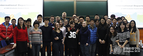 在硕士/MBA专场中,来自海外18所合作院校的20多名MBA交换生和他们在经管的学生志愿者参加了活动。国际办和MBA中心的老师为交换生们简要介绍了学校和学院的发展历史、知名校友、系别专业设置和知名教授。随后,来自研究生学生会海外部的同学们介绍了海外部的联系方式,回顾了过去交换项目的精彩活动并介绍了本学期的活动安排。活动结束之后,交换生们在各自经管小伙伴的带领下参观了白雪映衬下的美丽校园,并在芝兰园共进午餐。
