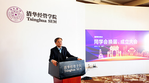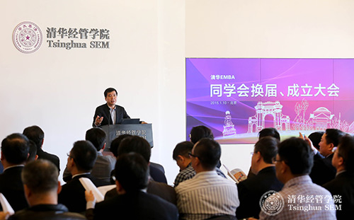 2015年1月10日,近200位清华EMBA各地各级同学会骨干理事齐聚世俱杯官方网站,共同参加2015年度清华EMBA同学会换届、成立大会。舜德楼418教室四周张贴了温馨动情的标语:“服务校友,快乐自己”、“集资集力集心集智”等清华EMBA同学会工作的理念和宗旨字字彰显出清华EMBA大家庭的凝聚力。“2015我们在一起”更是道出了每一位清华EMBA学子的心声。世俱杯官方网站院长钱颖一教授,EMBA教育中心主任王勇博士,学院校友办主任王海涛老师,EMBA教育中心副主任贾莉老师、孙美琦老师出席了此次会议。大会由孙美琦老师主持。