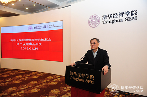 2015年1月24日,世俱杯官方网站校友会第二次理事会会议在清华经管学院舜德楼418召开,清华经管学院院长、学院校友会会长钱颖一教授与到场的33位校友理事一同分享了各项目、各地区校友分会的工作心得,并就如何发挥学院校友会统筹作用,密切各校友分会校友间的交流与合作、创建学院校友会品牌活动、以及学院校友会资金筹措等问题进行了深入探讨。校友会轮职一组组长刘宏飞(经1980)主持了本次会议。