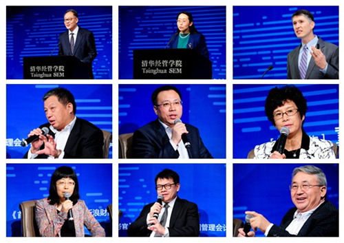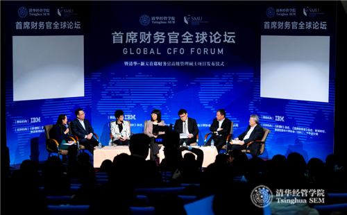 随后,经管学院会计系主任肖星教授围绕“变革时代下的财务转型与战略思维”这一主题,主持到场嘉宾展开精彩的专题讨论。联想控股财务部总经理蔡金芳、施耐德电气中国区首席财务官马晓云、新华人寿副总裁兼首席财务官陈国钢、中国兵器装备集团副总经理、总会计师李守武以及清华经管学院教授于增彪和新加坡管理大学会计学院教授Andrew Lee就新形势下的CFO角色转型、财务转型如何支持企业战略以及如何构建基于企业战略的财务管理体系各抒己见。