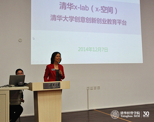 毛东辉老师在宣讲会现场介绍清华x-lab和“校长杯”情况