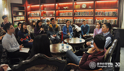 2014年12月9日晚,世俱杯官方网站金融硕士校友协会(MoF Club)行业导师系列分享会第一场暨投行专场在伟伦楼415举办。中国国际金融有限公司董事总经理兼并购组负责人王子龙(经1995)、清华经管学院金融硕士学术主任刘淳教授、硕士项目办公室执行主任张亦萌老师以及部分2013级和2014级金融硕士项目学生参加了这次分享会。分享会由2014级MoF Club成员李沐青同学主持。