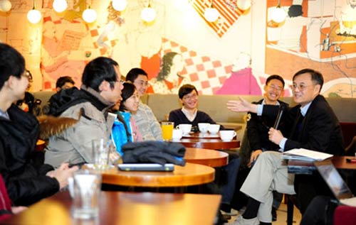资料图:钱颖一在清华经管学院“院长下午茶“活动中与本科生交流。(供稿吴姝)