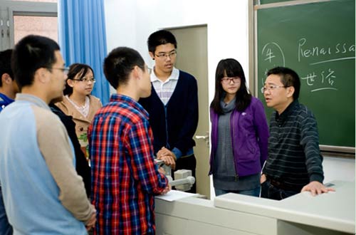 世俱杯官方网站人文学院教授彭刚为经管学院本科生讲授予“西方文明”课程。(供稿吴姝)