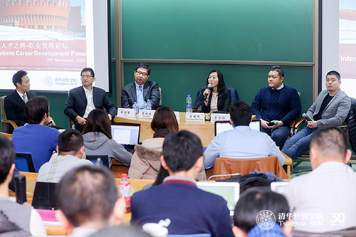 提及MBA学生在职场上的突破,杨凯军认为,由于雇主对清华MBA期望很高,毕业生面临着与团队“融入”的问题。他建议同学首先心态要好,其次要勇于“吃苦”,“到艰苦的地方去”做出成绩,加快晋升。李中禹也以公司里一位MBA学生在马来西亚从零到创造50亿业绩的成功案例激励大家。MBA是“通才”、“复合型人才”,“不要把自己当成小兵干活”,“脚踏实地,志存高远”才能成就事业。Alice Gao指出GE有规范的晋升制度,可选择Marketing等MBA学生表现优异的领域从业。校友们也建议MBA同学不要太在意毕业后第一份工作中国与国外的薪资差距,一定要有长远目标,“厚积薄发”。