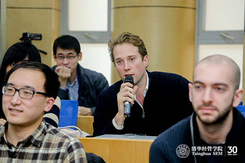 在讨论过程中,同学们听得聚精会神,频频点头。论坛结束后,同学们仍然意犹未尽,围着嘉宾们提出更多问题。会后同学们都纷纷表示职业发展中心组织的这次活动非常有意义,希望以后多举办类似的活动。来自于德国GMBA14级的宗杕雯同学表示,此次活动对她帮助很大。由于来自国外,“之前对中国的国企和民企了解很少,通过这次论坛发现在中国国企和民企都有着广阔的职业发展空间”。中国同学吕林评论说,职业发展中心组织的这个活动,让有志于在实业发展的同学对自己的职业发展有了更明确的认识和更强的信心。“感谢职业发展中心,为同学和知名企业提供了面对面交流的机会,让同学们有机会获得更多的就业机会。”