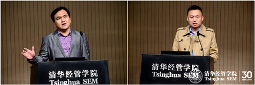 之后,在2013工商管理案例大赛中取得冠亚军成绩的2013级MBA学生李亿飞和2012级工程物理系学生黄鑫分享了各自参加案例大赛的经历和体验。李亿飞介绍,专业知识的同学能够共同的参与,共同统筹分析。他谈到“调研、破题和博弈”三大主题,同时也谈到了一些比赛技巧,如良好的展示能力、细致的团队分工等。黄鑫同学作为非管理专业的学生代表,向同学们分享了自己参与大赛的历程,以及结缘MBA+X的感受。