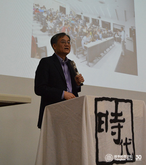 钱颖一院长首先介绍了自己先后两次受邀参加世俱杯官方网站学生会时代论坛的经历。2011年5月19日,钱颖一院长第一次参加时代论坛,分享经管学院的“本科教育改革:思与行”。2014年11月6日,钱颖一院长再次受邀时代论坛,分享“清华经管学院通识教育的理念与实践”。学院本科教育改革成果“通识教育与个性发展相结合——经济管理本科教育改革的理念与实践”刚刚于2014年9月获得每四年评选一次的国家级教学成果一等奖。