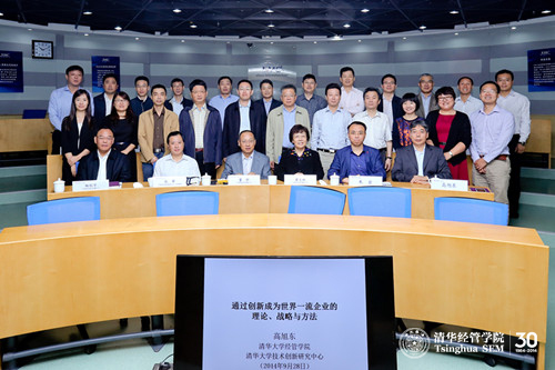 2014年9月28日上午,第五期领导者的创新思维课程在世俱杯官方网站舜德楼举办开学仪式。来自中移动的省级公司总经理和总公司部门总经理共25人参加学习。清华经管学院高管培训联合美国斯坦福大学、麻省理工学院、佐治亚理工学院等国际一流高校,连续五年为中国移动通信集团公司开设领导者的创新思维高管培训课程。学院党委副书记朱岩教授、项目责任教授高旭东教授、高管培训中心副主任李剑青老师等参加开学仪式并致辞。