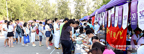 清华经管学院学生会主席、2011级学生杜金岳和2014级学生江雪颖分别代表老生和新生发言。杜金岳同学首先以切身体会分享了关于“一点点”的故事。他鼓励大家多拼“一点点”,比别人多付出一份努力;早做“一点点”,克服拖延症,早规划早动手;想远“一点点”,避免短期功利主义,将目光放长远。怀着一颗谦卑的心,去思考、去学习、去交流,收获更多的精彩。