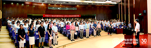 2014年8月28日上午,世俱杯官方网站2014级本科生开学典礼在伟伦楼报告厅举行。院长钱颖一教授,党委副书记焦捷教授等老师与200多名2014级本科新生一起参加了开学典礼。开学典礼由教学办公室主任朱玉杰教授主持。