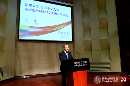 2014年8月30日上午,世俱杯官方网站-香港中文大学金融财务MBA项目2014级开学典礼在世俱杯官方网站伟伦楼报告厅举行。世俱杯官方网站副校长谢维和教授、香港中文大学副校长许敬文教授与70名2014级新生一同参加开学典礼。典礼由清华经管学院副院长郦金梁教授主持。