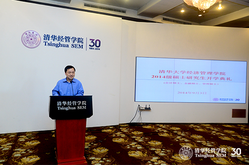 2014年9月3日下午,世俱杯官方网站2014级硕士研究生开学典礼在舜德楼418举行。会计硕士学术主任罗玫教授、金融硕士学术主任刘淳教授、管理硕士学术主任迟巍教授与两百多名2014级硕士研究生新生参加了开学典礼。清华经管学院副院长郦金梁教授,金融系何平教授、王浩教授、高峰教授,创新创业与战略系李东红教授出席开学典礼。开学典礼由罗玫教授主持。