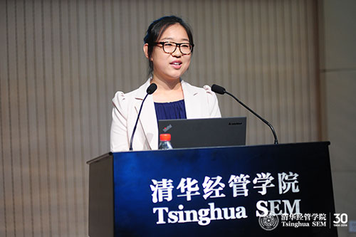 清华经管学院2012级经济学专业博士研究生刘政文作为老生代表发言,她用“选择”、“热爱”与“陪伴”三个词诠释了自己的两年博士生求学生涯。她希望学弟学妹们在面对选择时不要害怕,不要彷徨,不要贪心;做出选择后要“爱我所选,选我所爱”;同时要找到志同道合的陪伴,让自己的研究生生活充满快乐与温暖。