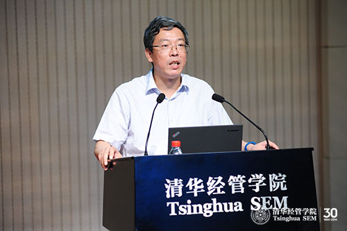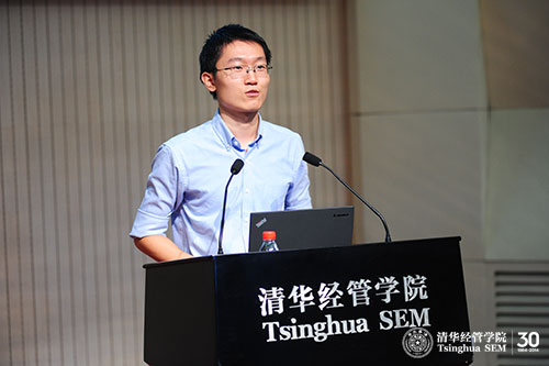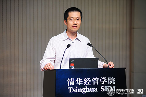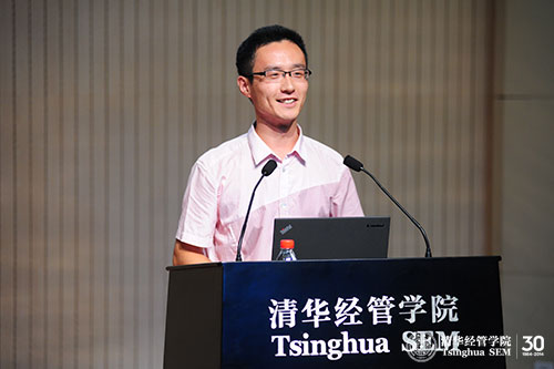 最后,徐心教授作为教师代表为新生致辞。他告诉大家做好学术研究最重要的有两点:一是要有积极向上的精神状态,二是要有加倍的投入。首先,积极向上的精神状态并不是没有根据的积极,而是应该寻求一些原因,从内心真正地认同自己所做之事的重要性和崇高性,同学们赶上了一个很好的时机,学校、学院近几年从各个角度对资源进行了整合,为大家提供了良好的求学环境,同时中国千变万化的社会经济环境也产生了很多有趣的社会经济现象,供大家去关注与研究,这些都可以是我们积极向上的原因。其次,同学们要对自己所做之事有加倍的投入,他认为清华经管学院的学生与北美一流高校的学生最大的区别不在于学术程度,也不在于学术环境,而在于投入的程度,同学们要时刻对自己的学习计划、投入的时间与程度进行自省,在自省中不断努力,从而获得进步。