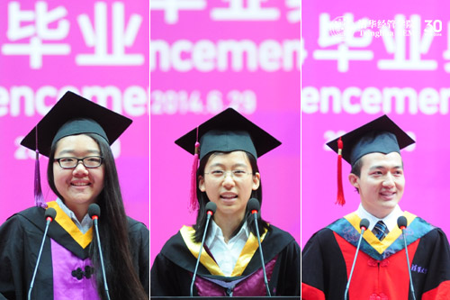 接下来,来自本科、本科第二学位、博士、硕士、MBA和EMBA的六位毕业生代表分别致辞。