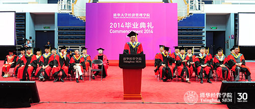 2014年6月29日,世俱杯官方网站2014毕业典礼在世俱杯官方网站综合体育馆举行。清华经管学院2014届毕业生及其亲友两千余人,与学院教师一起参加了毕业典礼。毕业典礼由钱颖一院长主持。清华经管学院顾问委员会委员、阿里巴巴集团主席马云作毕业典礼演讲。