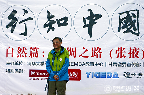 徒步穿越挑战赛是本次课程的重要环节之一,旨在让学员们通过艰苦跋涉,感悟历史,超越自我。钱颖一院长在活动中称,“行知中国-自然篇”,就是让大家在自然中行走,在行走中感悟,在感悟中提升。它是清华“自强不息,厚德载物”精神的传承和展示,是清华学子坚毅品格的闪耀和升华。同时,也是清华EMBA学子响应习主席的号召,走进张掖,为建设“丝绸之路经济带”贡献力量的实践。
